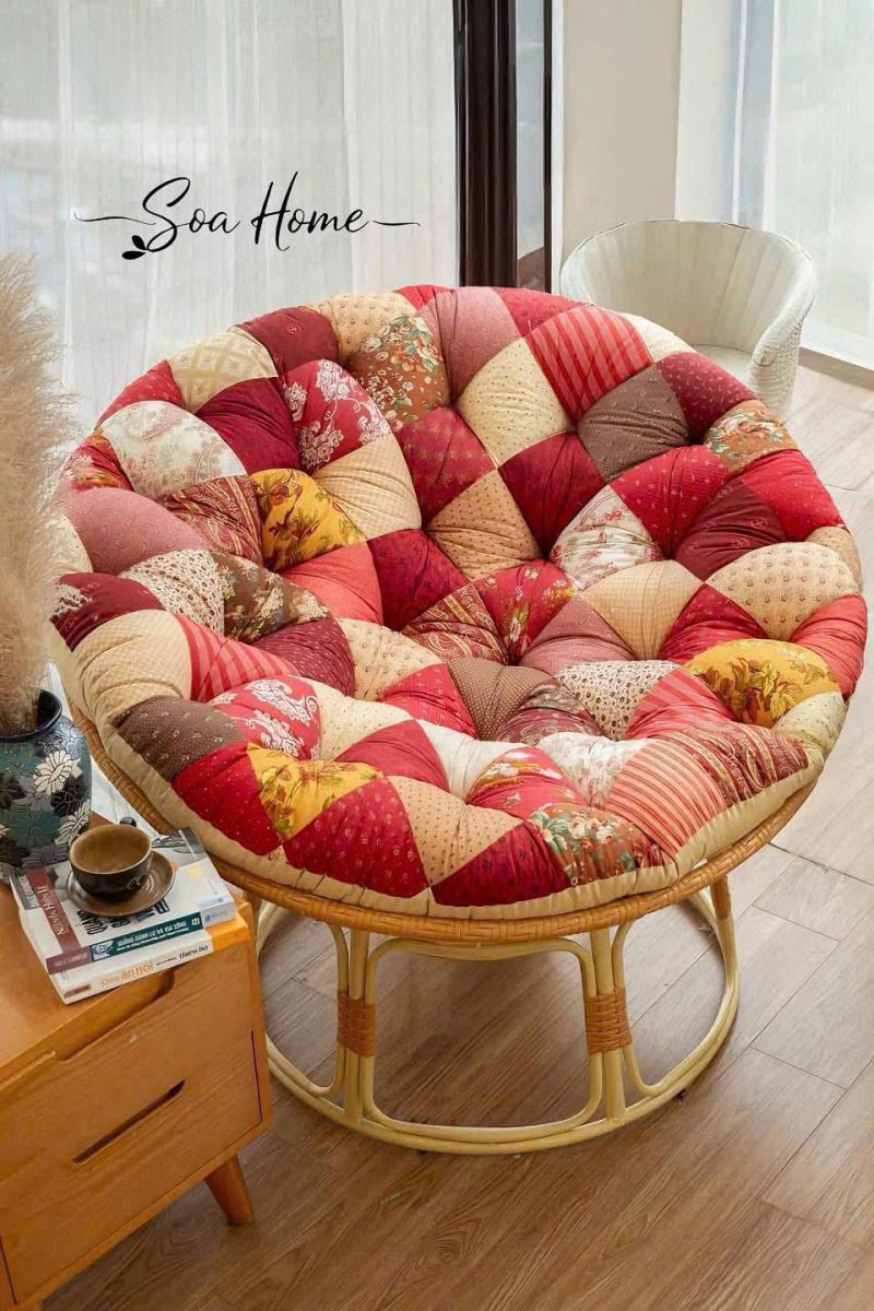 Mang đậm phong cách Boho Vintage, chiếc ghế Papasan thủ công là sự kết hợp hoàn hảo giữa thiết kế nghệ thuật và cảm giác thư giãn tối đa– Đệm bông dày êm ái, ngồi là mê