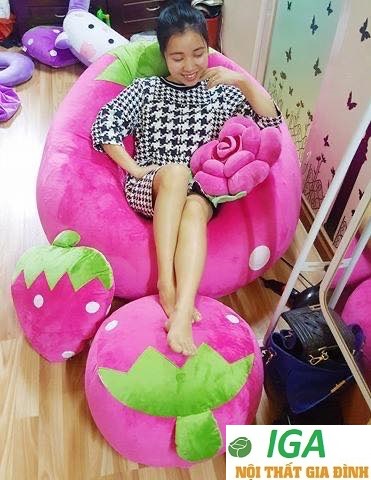 Ghế lười giọt nước hình Dâu Tây vải Nhung Lạnh hàn Quốc